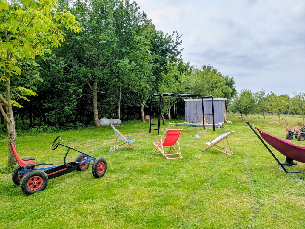Wir haben ein großes Gelände, das wir gerne mit euch teilen. Neben Bauerngärten, einem Naturteich, Schafweiden und Streubobstwiesen, gibt es auch viele Spielflächen für